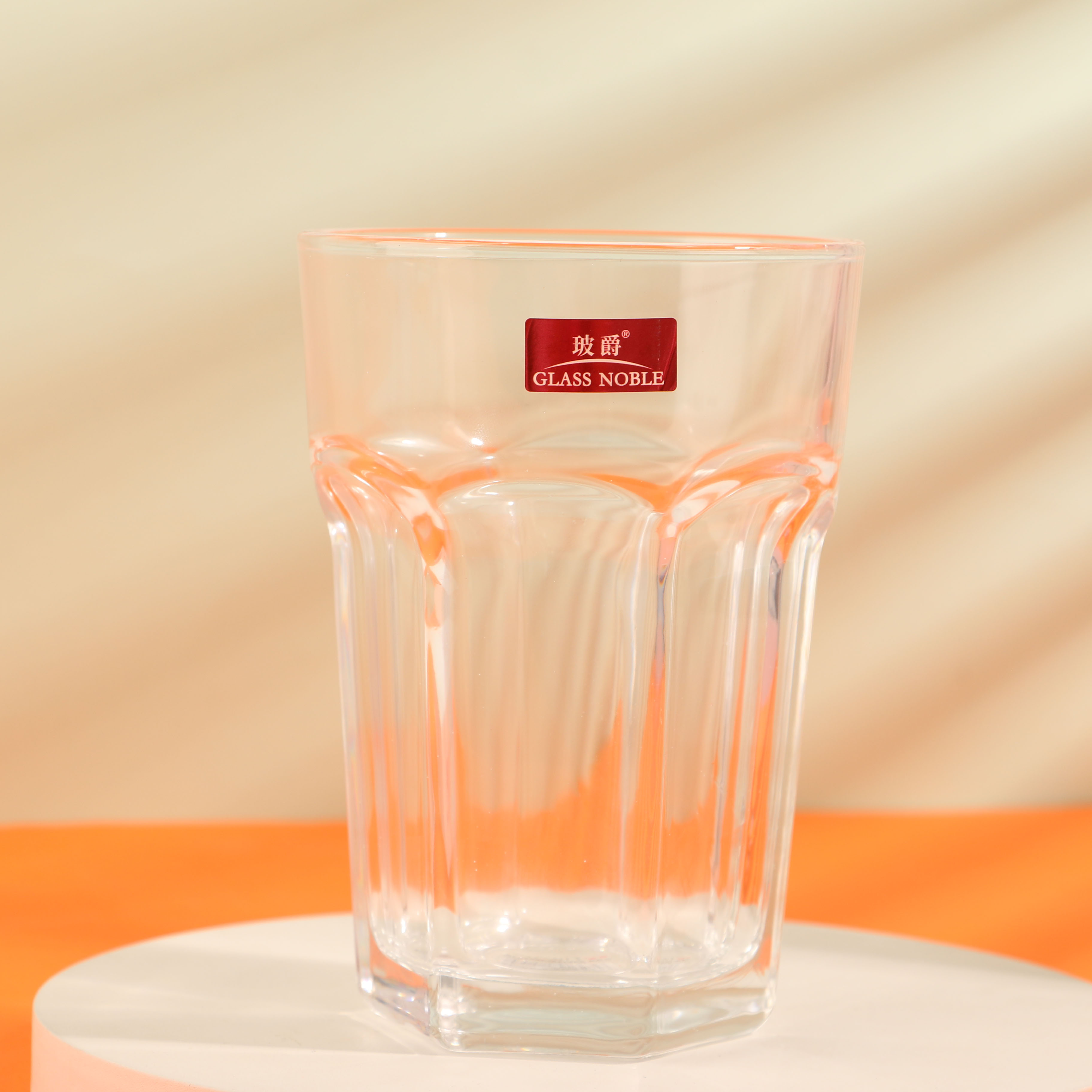 A glass water bottle