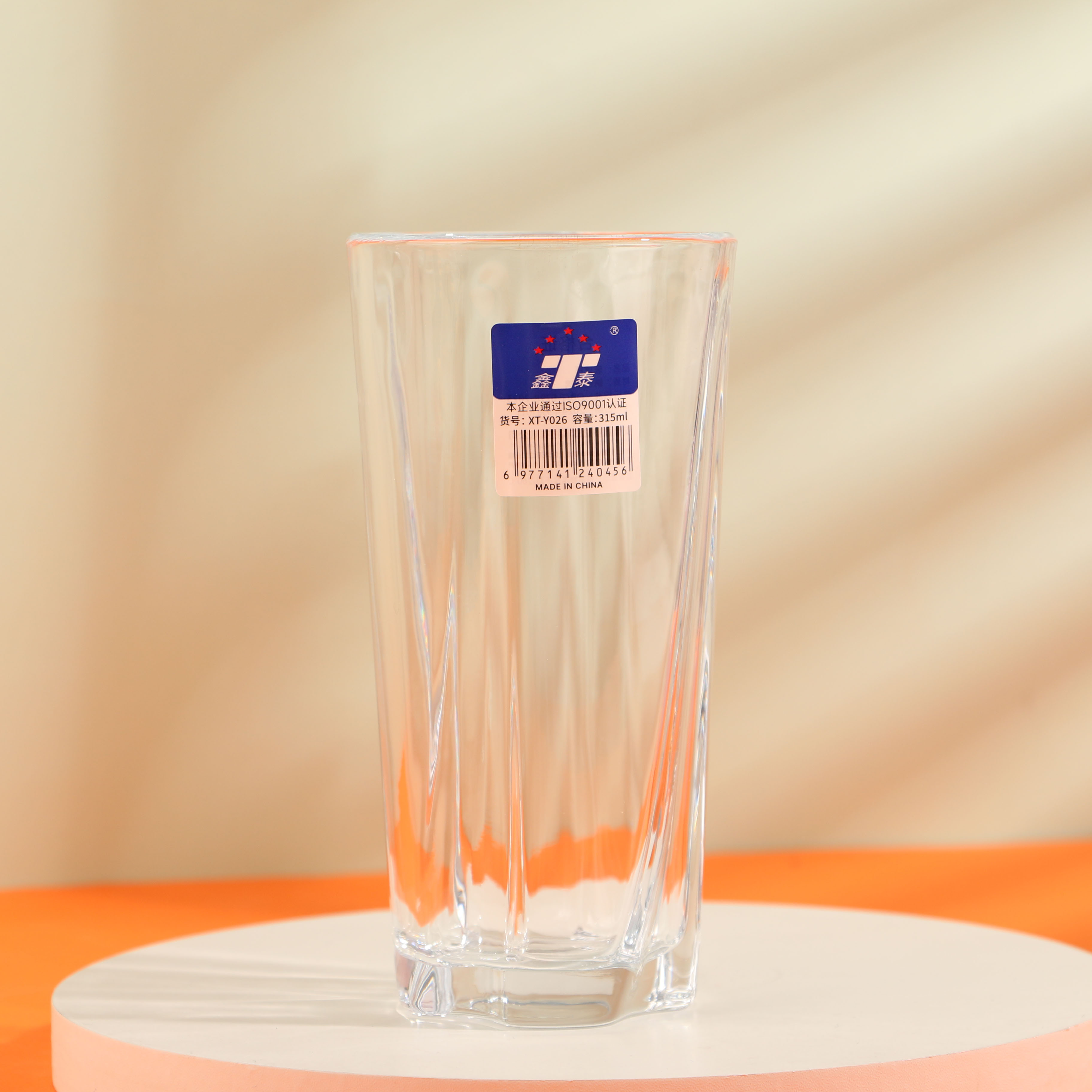 A glass water bottle